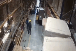 Op de video is te zien dat de collega onder de heftruck doorloopt op het moment dat de chauffeur de lading omhoog beweegt. Mogelijk heeft hij niet gezien dat de pallet instabiel stond of niet goed was vastgezet. De dozen lijken te verschuiven, waarna het hele gewicht plotseling naar beneden komt.