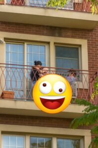 Wat deze scène vooral bijzonder maakte, was de manier waarop het stel volledig opging in hun eigen wereld. Ze waren duidelijk blij met hun nieuwe plek, en die blijdschap uitte zich in een spontane, zorgeloze vorm. Voor hen was het balkon waarschijnlijk een symbool van vrijheid en vernieuwing, een plek waar je even helemaal jezelf kunt zijn. Maar juist dat enthousiasme zorgde ervoor dat zij zich niet realiseerden hoe zichtbaar hun moment was. De buurt keek mee, niet uit sensatie, maar uit oprechte verwondering.