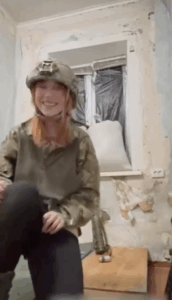 In de video is te zien hoe ze zich even afzondert van haar eenheid. Niet om uit te rusten of een tactische handeling uit te voeren, maar om een moment van rust te creëren. Ze zet haar helm af, veegt het stof van haar gezicht en haalt een kleine camera uit haar tas. Het beeld toont geen actie, geen spanning en geen strijd. Het toont een jonge vrouw die probeert te ademen in een omgeving die constant van haar vraagt om scherp te blijven.